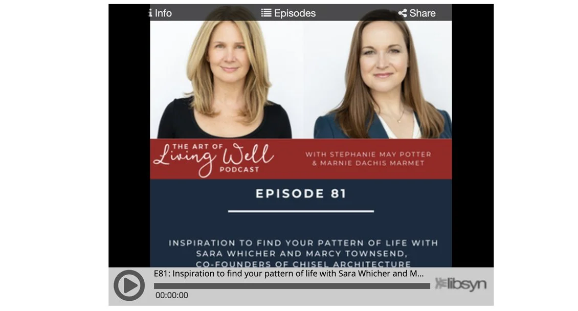 We had so much fun talking with Sara and Marcy and learning about the very personalized process, called Pattern of Life, that they go through with all of their clients. We learned that what sets Chisel Architecture apart is how they really listen to their clients, they watch people's body language and ask questions so that their clients get the results they want to enjoy their life in the new space. We can’t wait for you to experience how enjoyable, fun and fulfilling the architectural and design process can be for a homeowner, whether it’s a new home or a smaller remodel. Even if you’re not looking to embark on a project right now, you will learn so much from this conversation as Sara and Marcy share their tips for anyone who is thinking about making even the smallest change to their space.