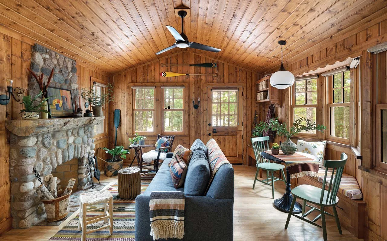 A Minneapolis couple’s quaint Wisconsin cabin is revived with lively colors and blended styles, uniting yesterday’s charm with today’s livability. Written by Kelly Ryan Kegans.
